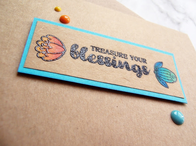 So CAS easy peasy. I stamped the sentiment and image and heat embossed them to add a bit more interest to the CAS design. Added a panel of PP and a strip of complementing PP and voila!